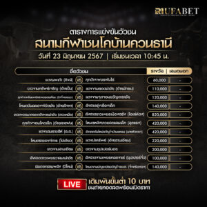 โปรแกรมชนโคบ้านปากพล ประจำวันที่ 23 มิถุนายน 2567 เริ่มชนเวลา 10:45 น. วัวชนถ่ายทอดสด คุณภาพHD ให้ชมฟรี! ทุกสนามทั่วประเทศ